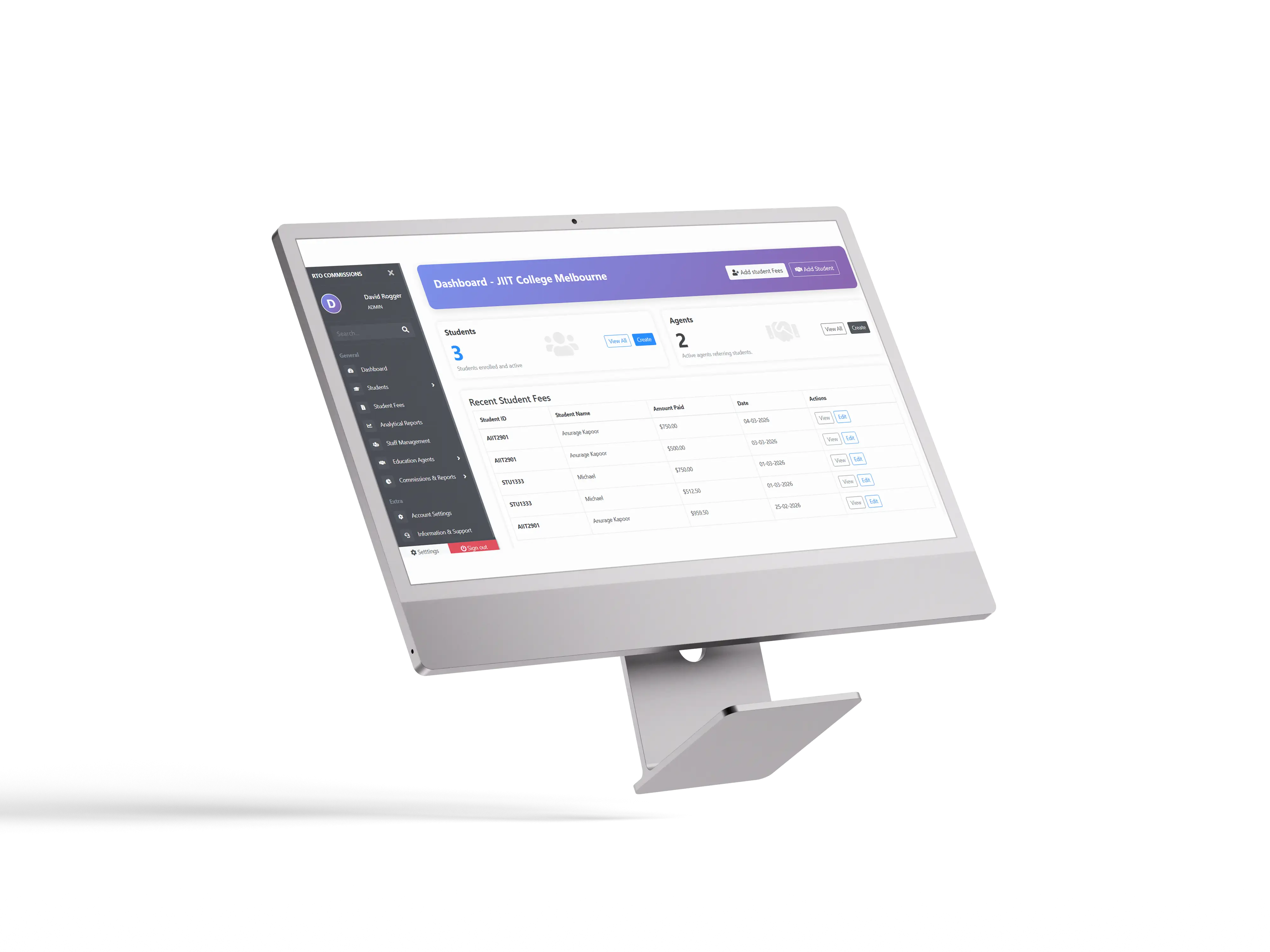 Manual calculations, every month Cross-referencing student lists, fee records, and agent agreements takes hours of admin time.